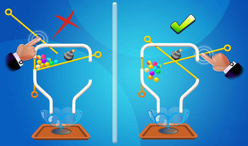 There are quite a few people who believe that aliens visit Earth regularly and live among us. They even have some evidence of that. We will not open a discussion on this issue, let's assume in the game Pin the UFO that it is. Many colorful aliens got stuck on our planet and a flying saucer flew after them to bring them back to their planetgravity pulls the balls down towards the spaceship. But then pins are in the way! Can you help out and pull the pins and get the balls to where they are supposed to be?